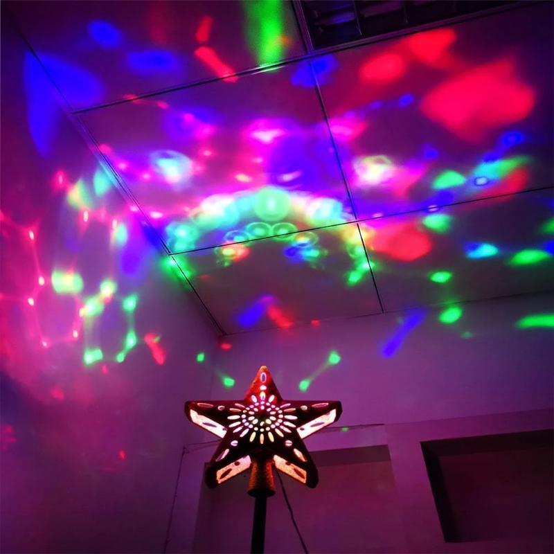 • CLASSIC DESIGN: This gold Xmas tree topper features hollow-out star design with shiny silver powder. Adding sparkling light to your Christmas tree. With colorful rainbow LED projector inside. Bring brilliant colors and warm Christmas ambiance.