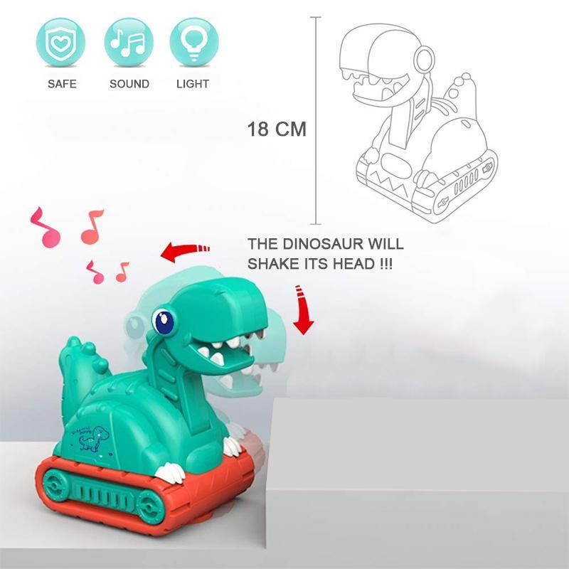 🦖Creatively designed with the combination of prehistoric dinosaur shape and modern car wheels, this dinosaur car can drive automatically with the lights, authentic roaring sound effects, and cheerful music and even turn directions if it hits an object.