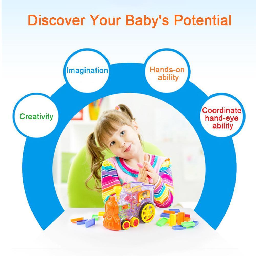 - Fill the cartridge and start the train to lay your domino trail. All domino rally sets work together to help make the coolest domino creations you can imagine. An ideal toy or gift for training the children's patience and counting ability. Just rack them up and knock They down.