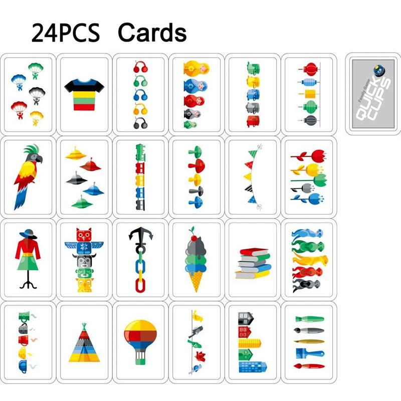 • Package Includes: 6 cups in five colors + 24 cards + instructions+ 1 Bell