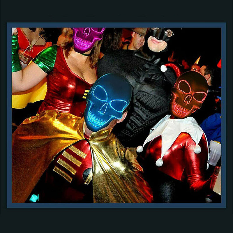 Special Design LED Mask for Halloween: Halloween mask with LED EL lightening wire make you stand out in any party, clubs or other festival events.The mask was made into a skeleton shape. The wire on the face can make light at night. Create a more horrible atmosphere.