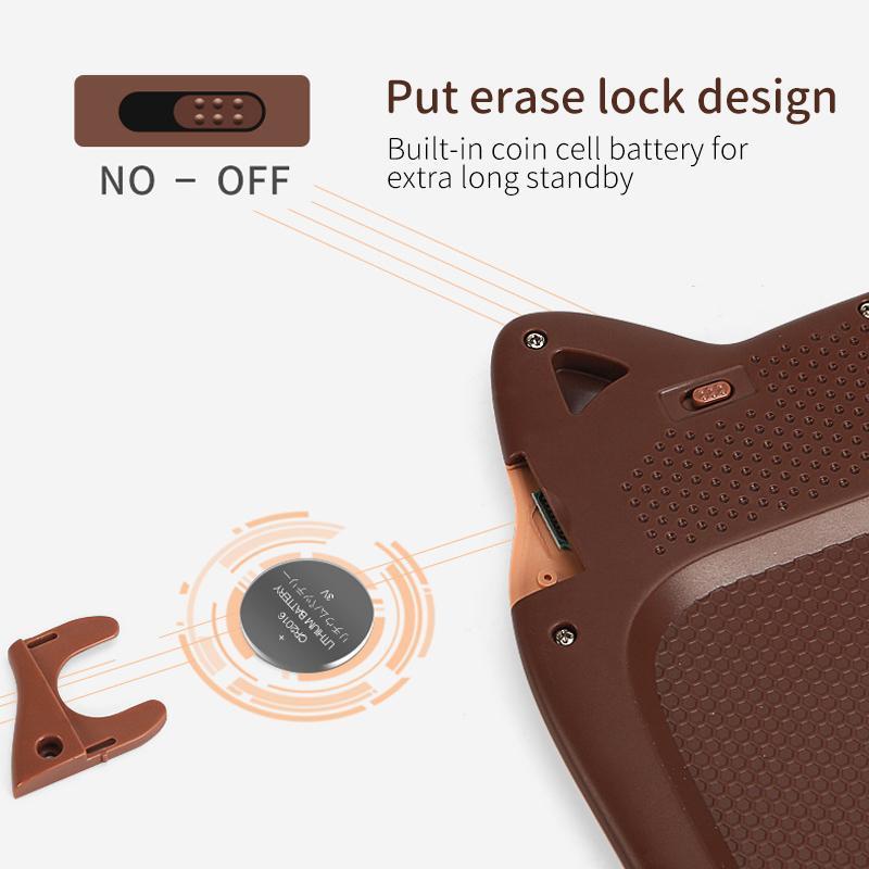 Environmental Protection: The kids drawing board is like an endless sheet of paper! One writing tablet can repeat 100,000 times. The drawing tablet is built in sealed button battery(replaceable), the battery can be used at 12 months. Start to make the world paperless with Drawing Pad.