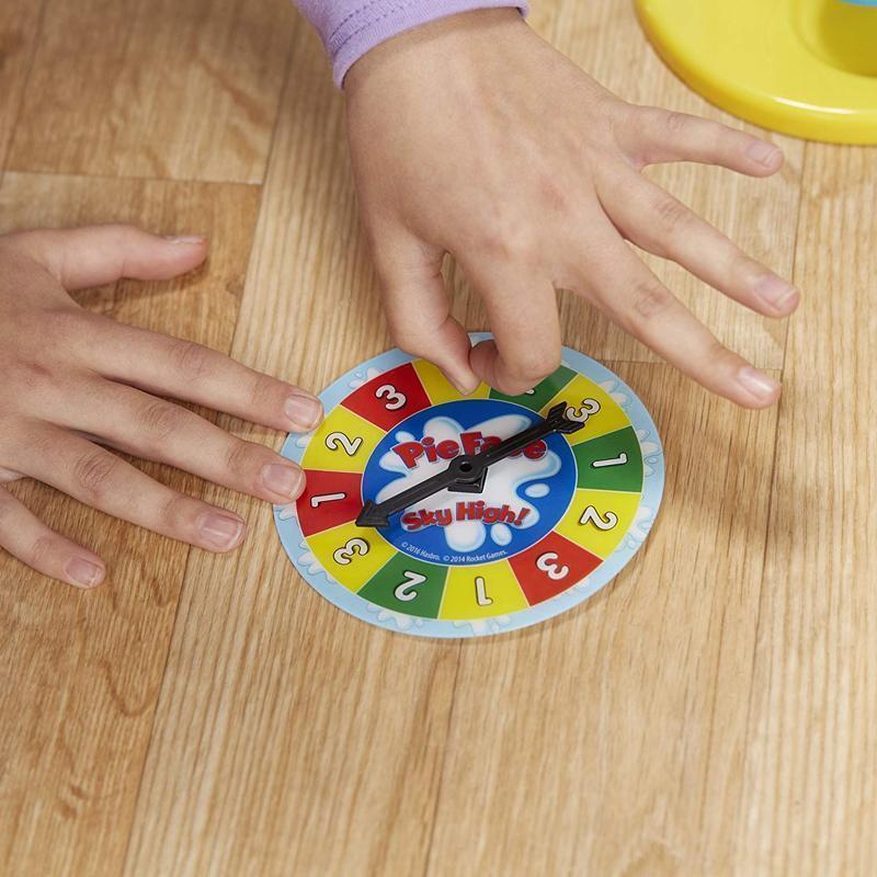 • SCORE 25 POINTS TO WIN - spinner determines how many times player clicks the handles forward on the pie thrower. Players score points for completing their turn safely, but every click brings the moment everyone is waiting for a little bit closer