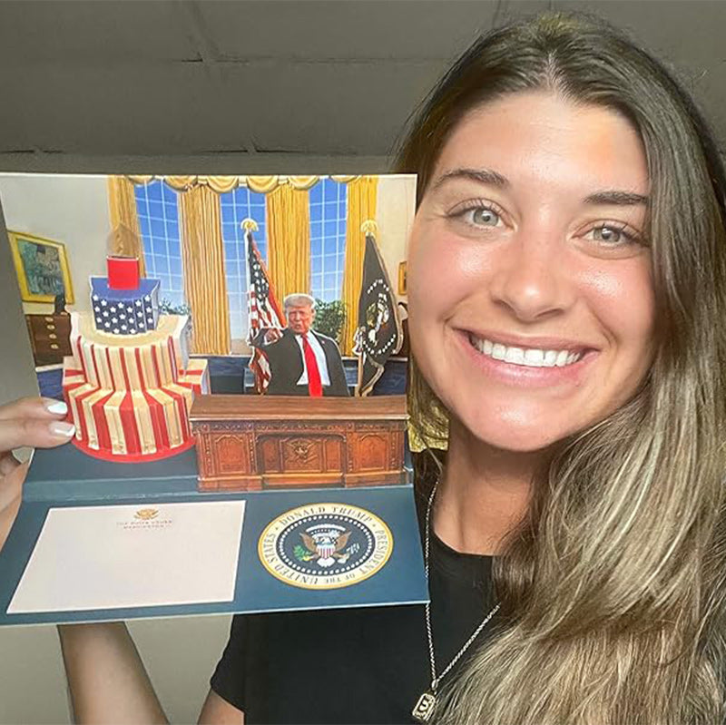 Make someone's birthday great again! When your friend or loved one opens up this awe-inspiring birthday card, our 45th President delivers a personal message to them with patriotic background music. This is the greatest birthday card you can give somebody with or without a trump teddy bear or Biden toilet paper.